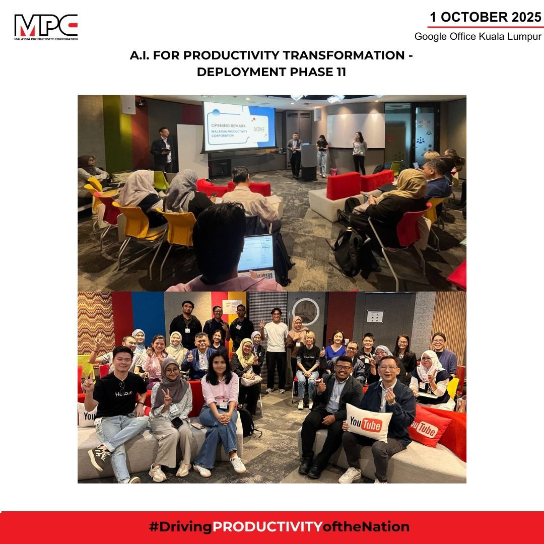 The A.I. for Productivity Transformation program, in collaboration with PointStar and Google Cloud, has successfully enabled 15 companies to develop proof of concepts (POCs) by adopting AI-powered tools to automate processes, optimize workflows, and boost operational efficiency. To date, MPC has guided more than 150 companies in adopting AI through Gemini and AppSheet, resulting in leaner operations and measurable productivity gains. This milestone reflects the transformative role of AI in accelerating digitalization and strengthening the competitiveness of Malaysian enterprises in the digital economy. #MPC #AIProduktiviti #MPCProductive #Drivingproductivityofthenation