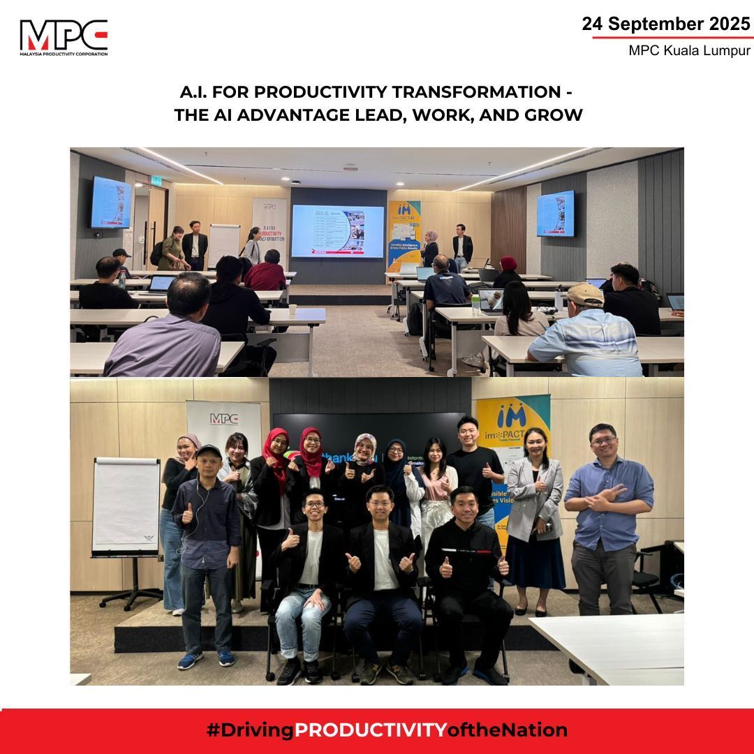 This hands-on workshop helps businesses analyse productivity bottlenecks, strengthen leadership and teamwork, redesign workflows for quality, and leverage AI-powered tools to execute and sustain improvements. Participants then deepened the People and Process pillar where personalities of the participants were assessed to improve collaboration for project execution, and applying a practical framework to set clear goals, redesign workflows, and add accountability with checklists and quality controls. The Technology session translated process improvements into actionable digital workflows, introduced tools to track progress and productivity. #MPC #AIProduktiviti #MPCProductive #Drivingproductivityofthenation
