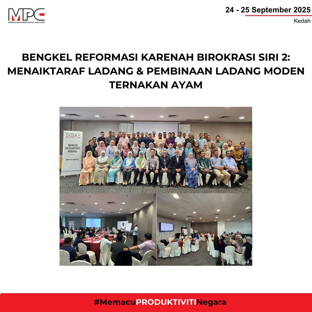 Bengkel siri ini menghimpunkan kerajaan negeri, agensi teknikal, PBT dan industri bagi mengenal pasti kekangan serta merumuskan cadangan penambahbaikan prosedur kelulusan pembinaan ladang moden tertutup. Bagi permohonan ladang baharu, bengkel mencadangkan garis panduan seragam di semua PBT yang memudahkan proses OSC, mengurangkan agensi teknikal terlibat, cadangan pengurangan kos perunding dan mempercepatkan kelulusan. Pendekatan ini dapat menurunkan tempoh kelulusan daripada maksima 99 hari kepada maksima 60 hari, di samping memastikan kepatuhan kepada aspek teknikal dan piawaian biosekuriti. Bagi ladang sedia ada, bengkel menekankan keperluan pemutihan melalui pelaksanaan prosedur khas yang lebih ringkas dan kos pematuhan yang munasabah. Cadangan termasuk penggunaan permit bangunan sementara, semakan semula kadar fi, dan dokumen teknikal minimum bagi memudahkan pengusaha menaiktaraf dari ladang terbuka kepada sistem tertutup moden. Langkah susulan yang dipersetujui termasuk penyediaan garis panduan/SOP khusus permohonan ladang moden tertutup, serta penyediaan kertas dasar untuk dibentangkan kepada EXCO Pertanian dan Kerajaan Tempatan sebelum dikemukakan ke Majlis Mesyuarat Kerajaan Negeri. Dengan langkah ini, diharap Kedah dapat menjadi negeri amalan terbaik dalam mewujudkan persekitaran yang kondusif untuk pembinaan ladang ayam moden, seterusnya menjamin produktiviti pengeluaran dan keterjaminan makanan negara.