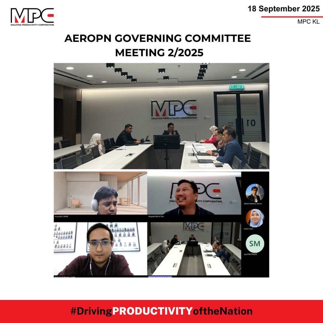 The Aerospace Productivity Nexus (AeroPN) successfully convened its Governing Committee (NGC) Meeting No. 2/2025, chaired by AeroPN Champion Mr. Naguib Mohd Nor. The session brought together key stakeholders from government agencies and industry players, including representatives from MIGHT, MATRADE, CAAM, SAT ASIA and AMRACE to review progress and discuss ongoing initiatives. The meeting highlighted AeroPN’s Strategic Framework, followed by progress updates current projects and futher projects AeroPN, supply chain excellence, and AeroPN equity and financing. The session concluded with renewed commitment to advancing productivity transformation and collaboration within the ecosystem, marking another important step in AeroPN’s journey to drive industry productivity and competitiveness.