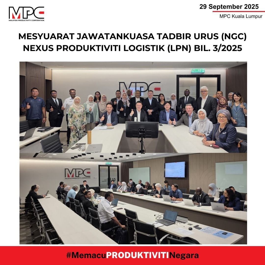 Malaysia Productivity Corporation (MPC) through Logistics Productivity Nexus (LPN), held its third Nexus Governing Committee (NGC) meeting hosted by MPC Kuala Lumpur and chaired by YBhg. Dato' Seri (Dr.) Michael Tio, Champion of LPN. The session brought together key committee members including representatives from the public and private sectors, industry associations and academia to discuss strategic initiatives, updates on current and upcoming logistics projects that aimed at enhancing productivity in the logistics sector. A total of three presentations and discussions were conducted covering the following topics: * “Railway Optimization Initiative” by Karl Gooderis, Chief Executive Officer, EUROCHAM Malaysia * “MRI3 in Logistics: Malaysia Logistics Consortium (MLC)” by YBrs. Profesor Madya Ts. Dr. Nurul Haqimin Mohd Salleh, Deputy Director (Industry Network), Universiti Malaysia * “Green Initiatives for Malaysia Logistics Ecosystem” by Mohd Yazid Abdul Majid, MPC Moving forward, LPN remains committed to prioritizing the successful execution of these initiatives, reaffirming its dedication to accelerating productivity growth in the logistics industry.